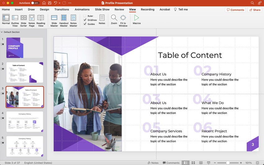 PowerPoint offers different views to work with your slides, such as Slide Sorter and Outline View. While you can access standard views in PowerPoint Online, some advanced features are missing, limiting your ability to rearrange or review content effectively.